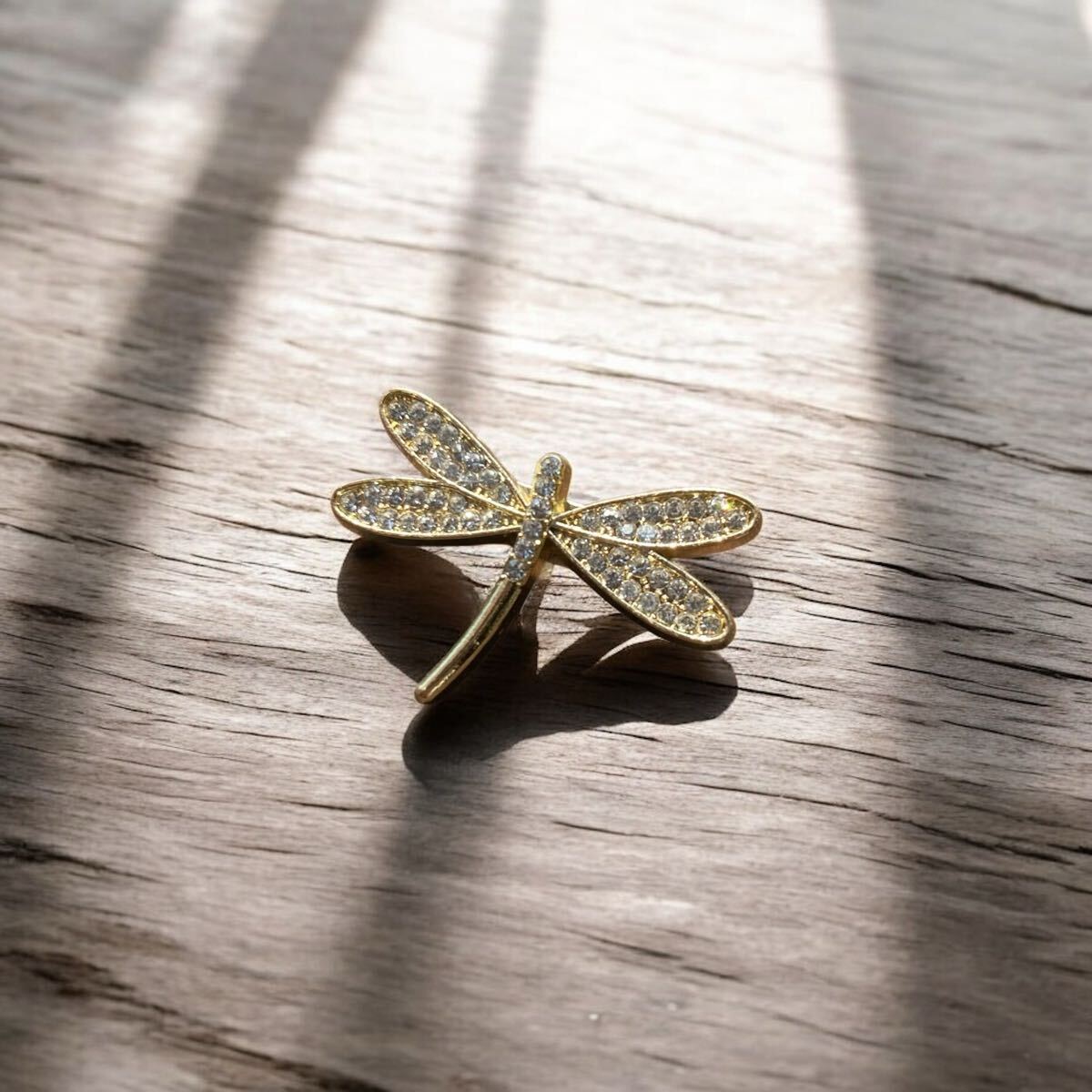 - 【ブローチ】トンボ クリアラインストーン ゴールド 小型 フォーマル エレガント シック ピンブローチ アクセサリー 可愛い