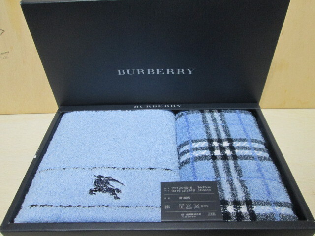 - ★バーバリー フェイスタオル ウォッシュタオル ブルー 未使用★