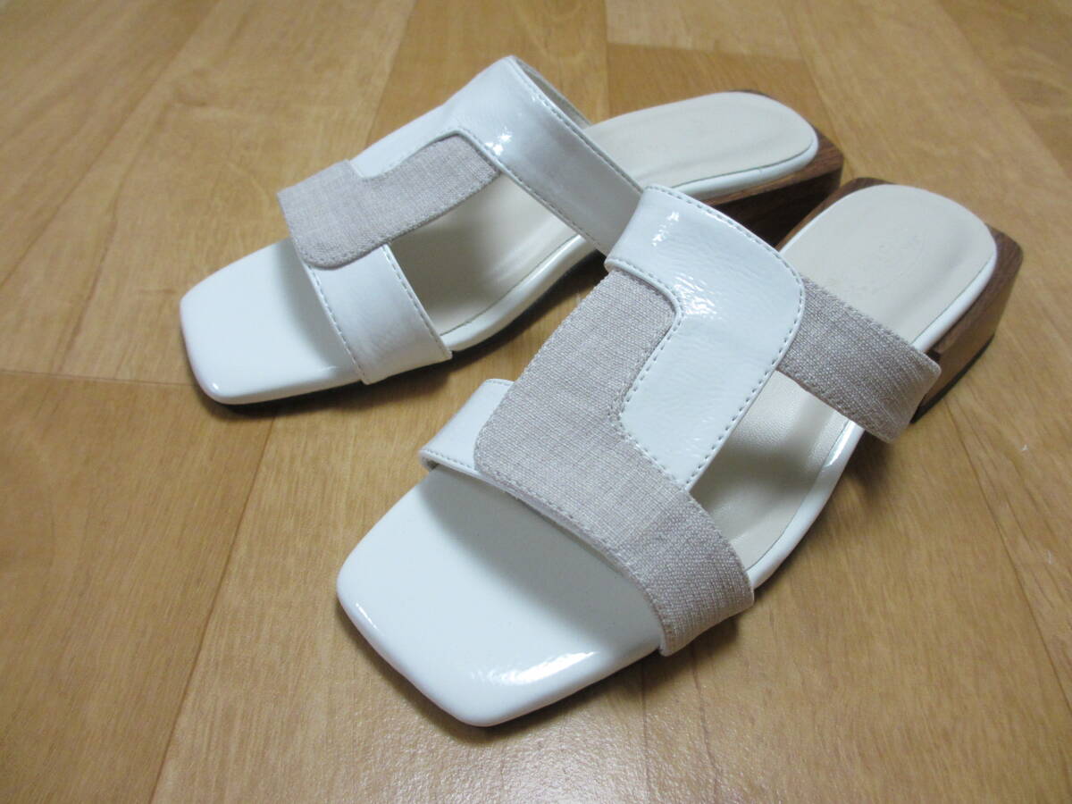 - 【未使用】マフモフ★異素材 スクエアトゥ サンダル S 白×BE/22cm-22.5cm