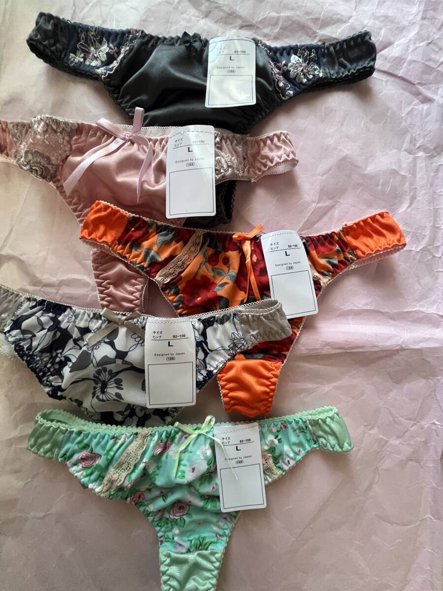 - Lサイズ!5枚セット!光沢ツルツル素材!シフォン使いあり!高貴品格!色とりどり!エレガント!Tバックショーツ!No.幸