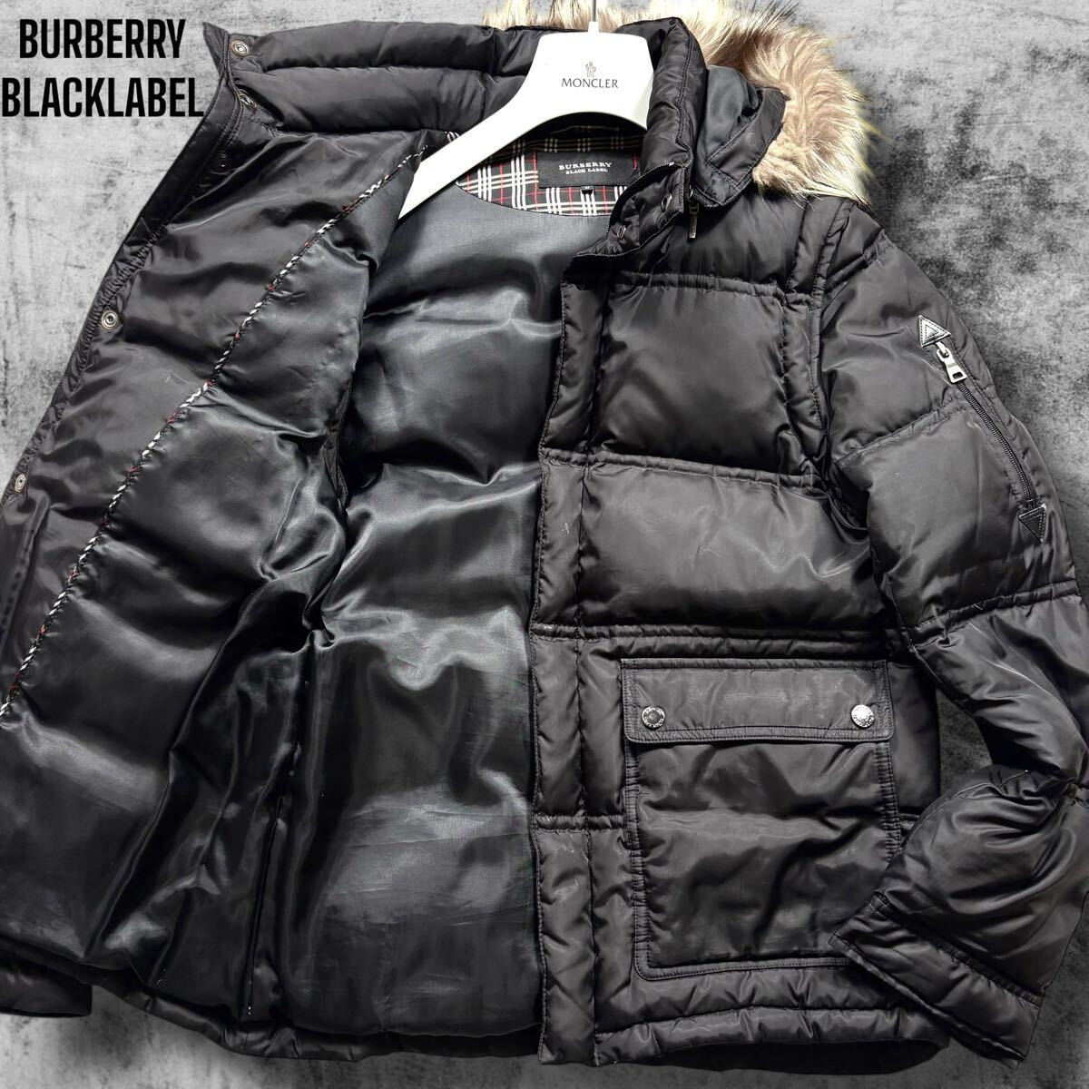 - 美品/6way◎バーバリーブラックレーベル シルバーフォックス 袖着脱 ダウンジャケット ベスト ミリタリー ノバチェック BURBERRYBLACKLABEL