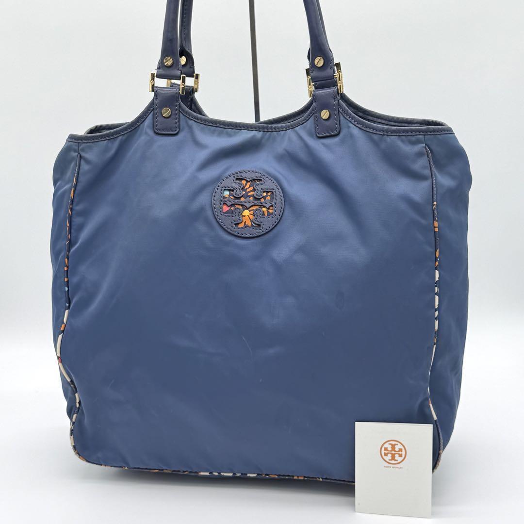 - 【良品】Tory Burch トリーバーチ ハンドバッグ トートバッグ 花柄 フラワー A4収納可 肩がけ ナイロン レディース ブルー CH000626