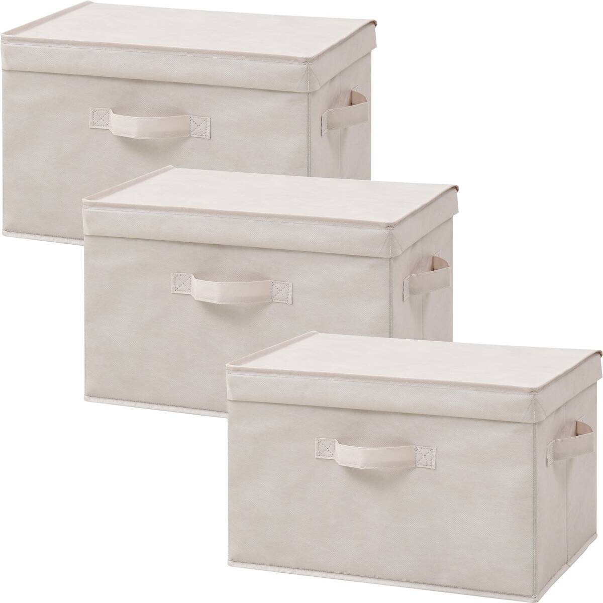 - 山善(YAMAZEN) ふた付き 収納ボックス 3個組 カラーボックス対応 取っ手付き 幅38×奥行25×高さ25cm 完成品 ベ