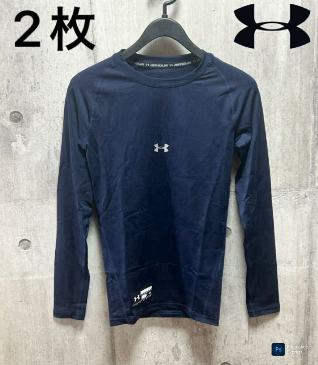> 2枚 未使用 正規品 ネイビー SM メンズ アンダーアーマー HEATGEAR ヒートギア ARMOUR COMP LS 長袖 クルー野球 トレーニングウェアー