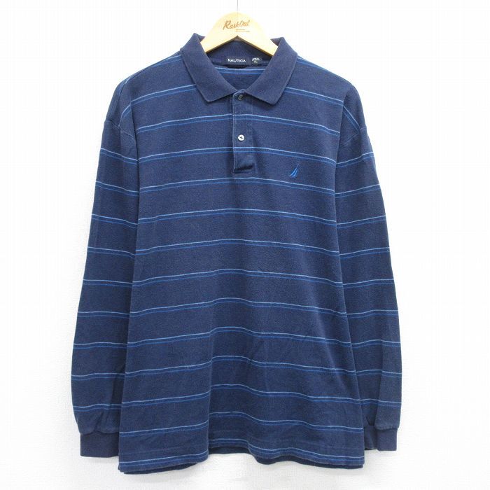- XL/古着 ノーティカ 長袖 ブランド ポロ シャツ メンズ ワンポイントロゴ コットン 紺他 ネイビー ボーダー 25jun28 中古 トップス
