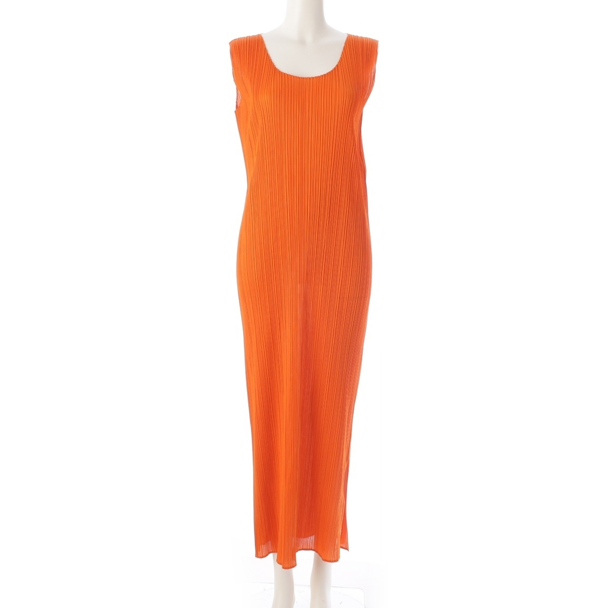 - プリーツプリーズ イッセイミヤケ クルーネック ノースリーブ ワンピース PP53-JH616 オレンジ 3【中古】