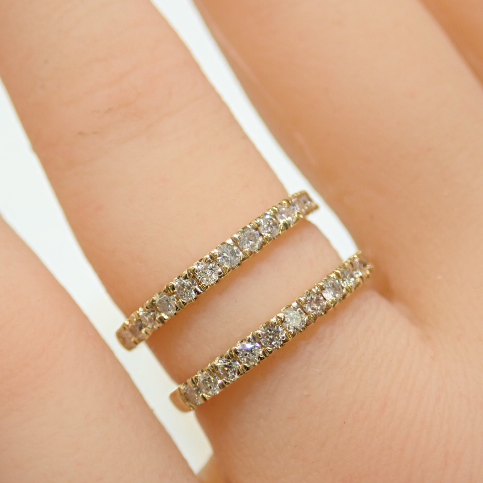 - ■10K ダイヤモンドハーフエタニティリング 2本■12号 指輪■16pc×2本■中古磨き仕上げ■4月誕生石■