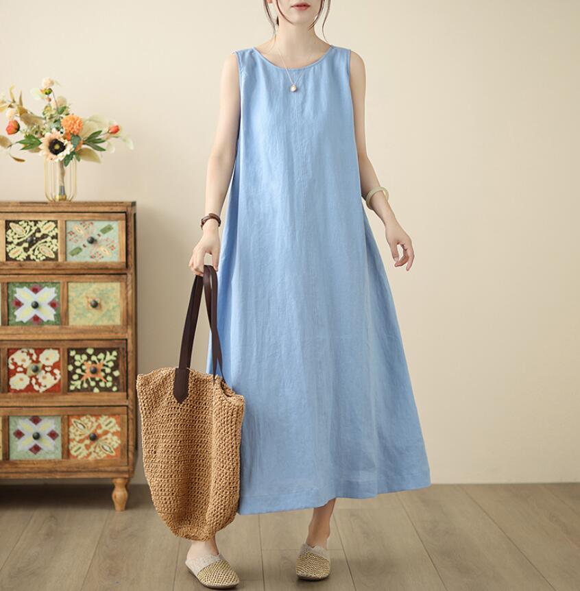 - 新入荷 * 夏ワンピース 綿麻 ノースリーブ ロングワンピース ゆったり レディース マキシ 涼しい ロング丈 体型カバー 着痩せ*