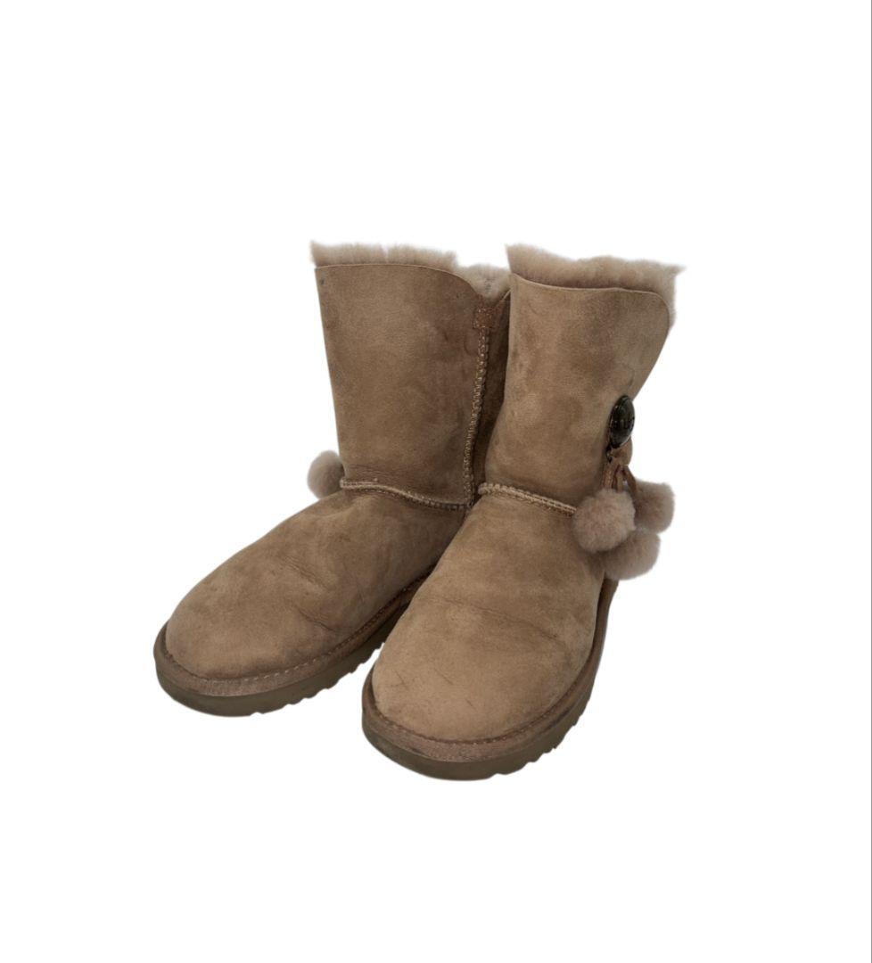 > 【UGG】ムートンブーツ☆パフボタン付き☆キャメル☆アグ☆ブラウン☆茶色☆スノーブーツ