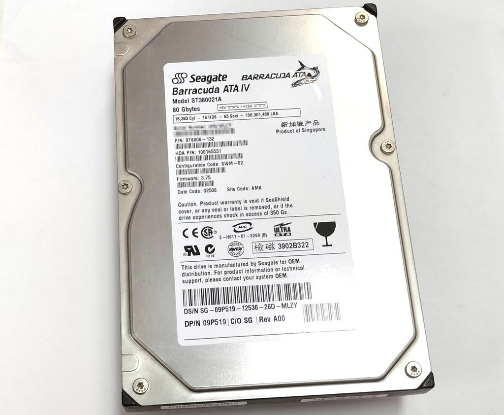 ドライブ自体はSeagate製 ST380021A となります。