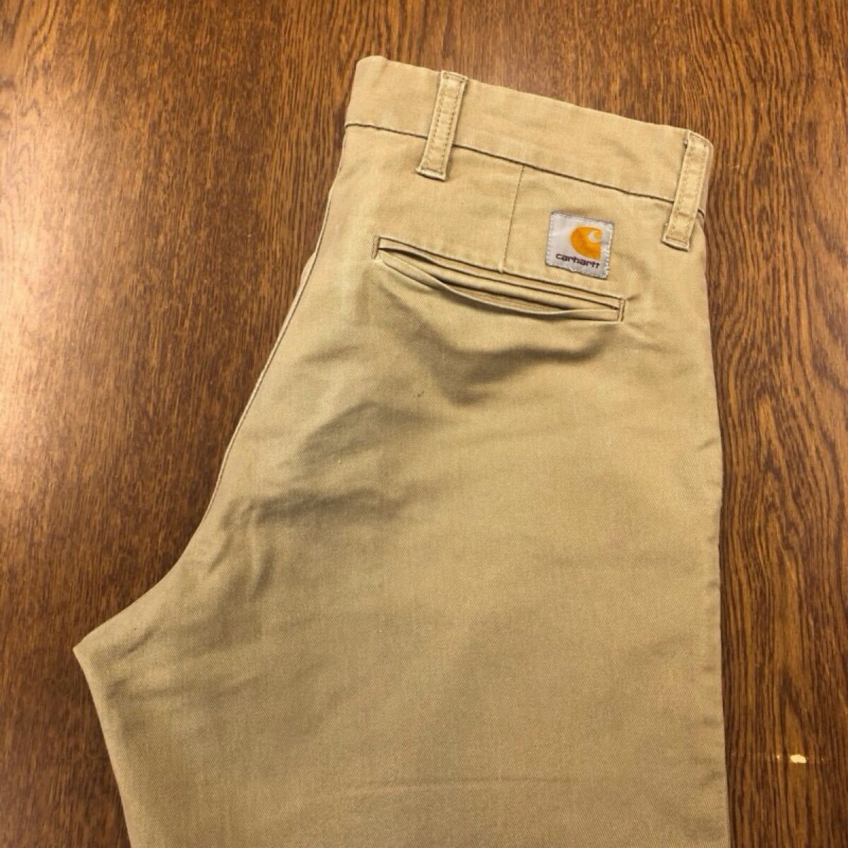 > 【GG058】Carhartt W31 L34 ワークパンツ ベージュ ストレッチ生地 メンズブランド古着 カーハート 送料無料