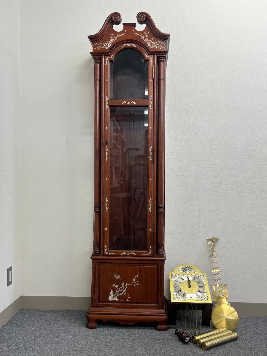・TempusFugit ホールクロック アンティーク調 木製 螺鈿細工 柱時計 大型 振り子時計