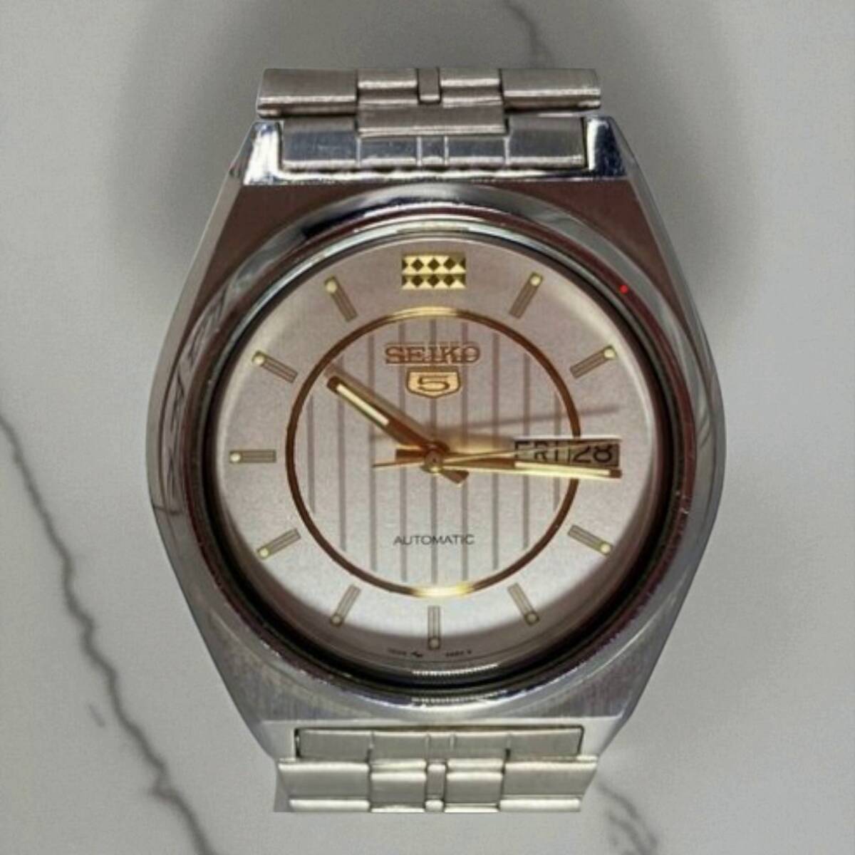 - 【稼働品】SEIKO セイコー 5 腕時計 7009-876A デイデイト 文字盤 ホワイトシルバー色 自動巻き