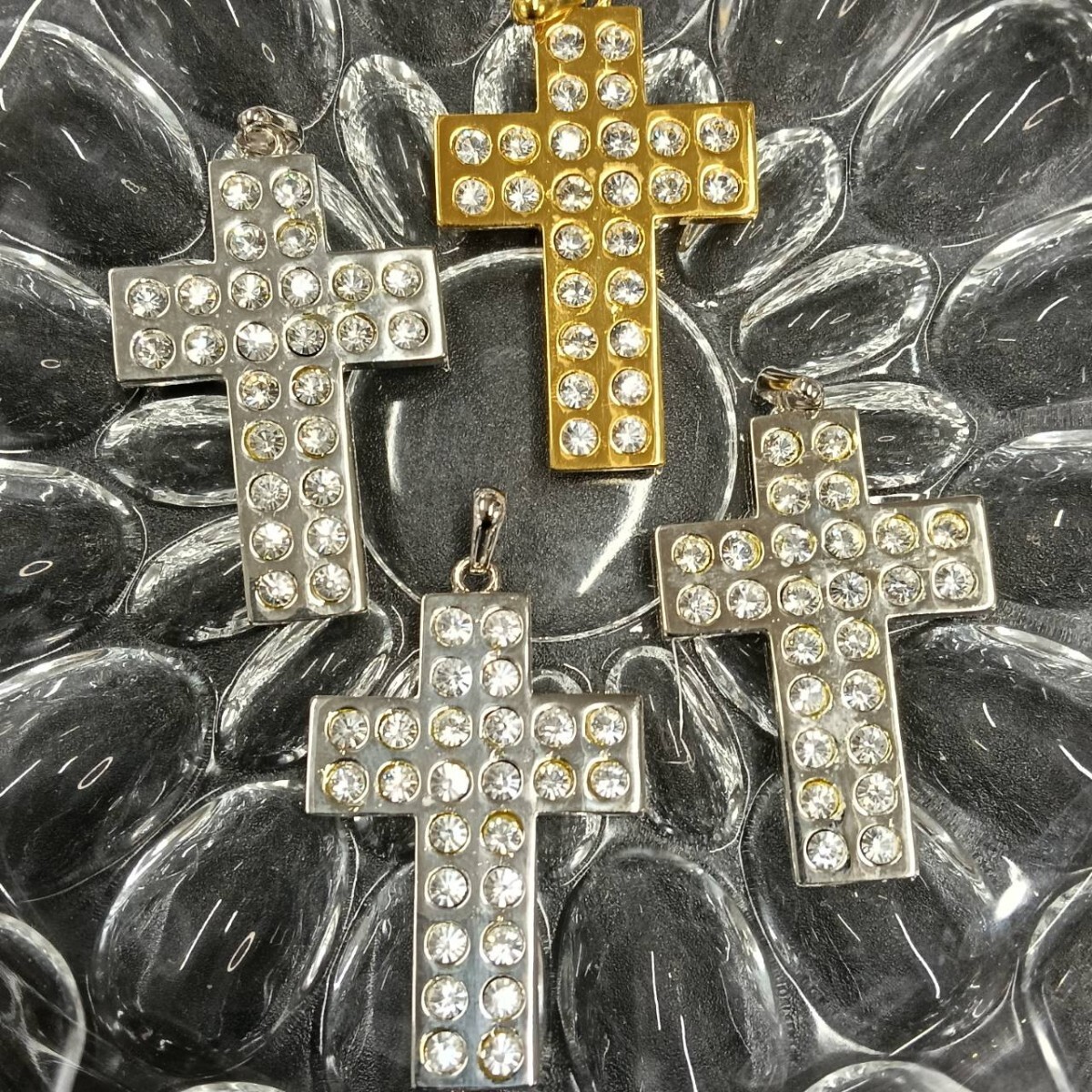 > ☆未使用 SWAROVSKI スワロフスキー 十字架 クロス ロザリオ パーツ 4個 14.7×3.1cm ゴールド色 シルバー色 ペンダント ネックレス B-78