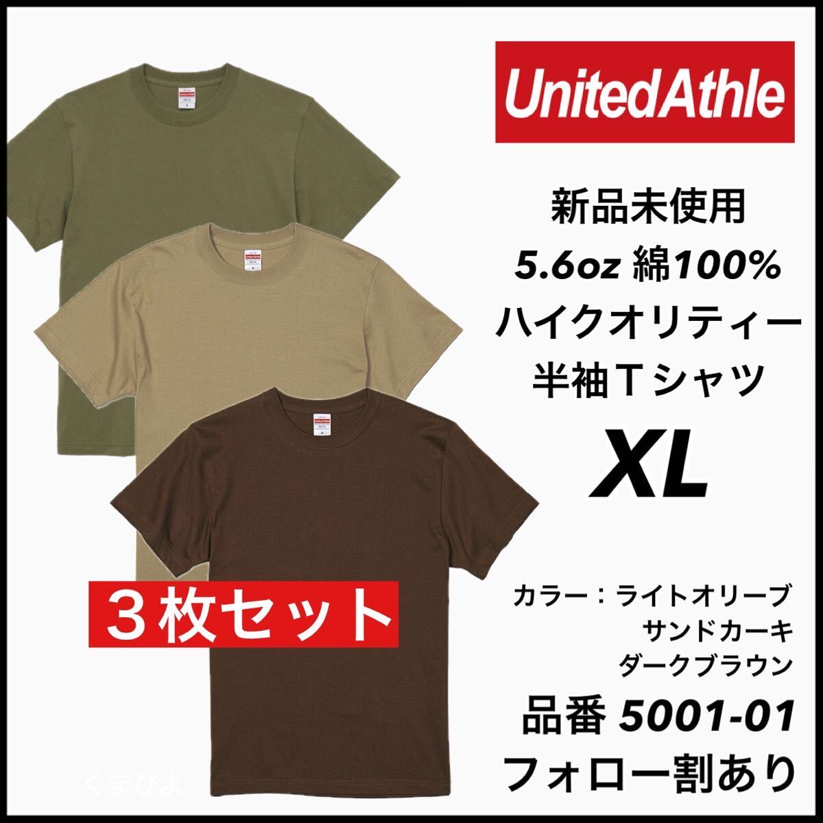 - 新品未使用 ユナイテッドアスレ 5.6oz 無地半袖Tシャツ 3枚セット XLサイズ ライトオリーブ サンドカーキ ダークブラウン United Athle