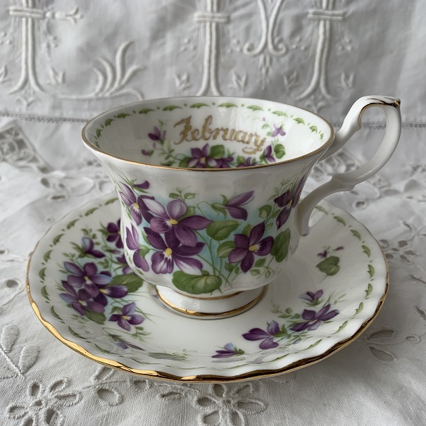 - 美品 ロイヤルアルバート ROYAL ALBERT フラワーオブザマンシリーズ 2月 すみれ柄 カップ&ソーサー 廃盤品 希少 菫