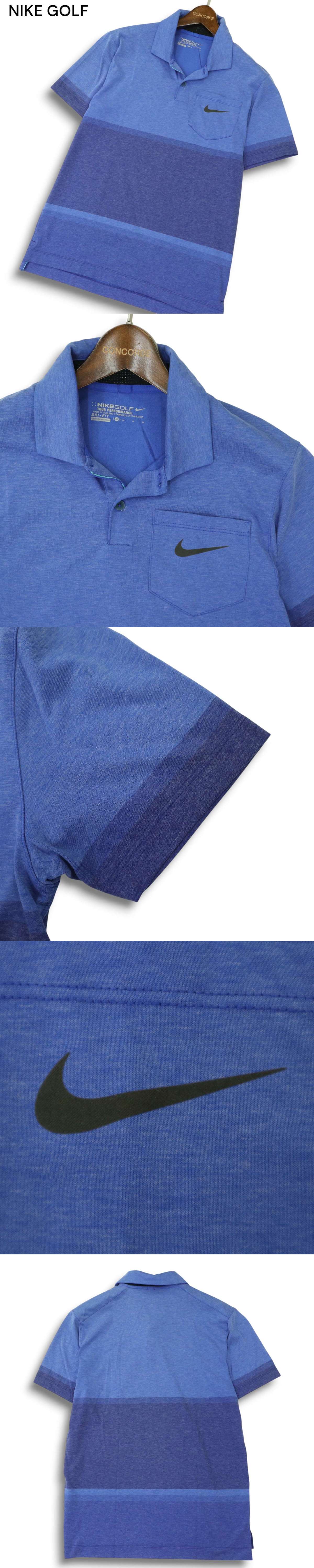 > NIKE GOLF ナイキ ゴルフ 春夏 ロゴ★ DRI-FIT 吸汗速乾 ブロック 切替 ボーダー 半袖 ポロシャツ Sz.M メンズ ネイビー