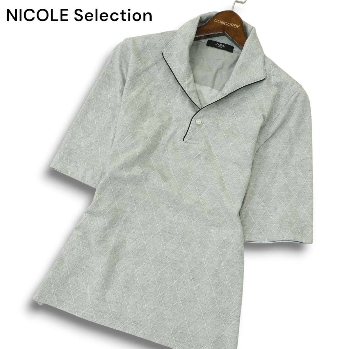 > NICOLE Selection ニコル セレクション アーガイル★ 半袖 イタリアンカラー ポロシャツ Sz.46 メンズ グレー