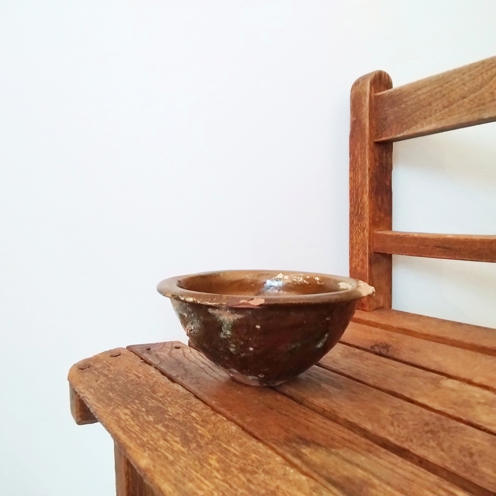 - 古い鉢 フランス 1900年代 ヴィンテージ アンティーク 古道具 植木鉢 陶器 オリーブグリーン インテリア