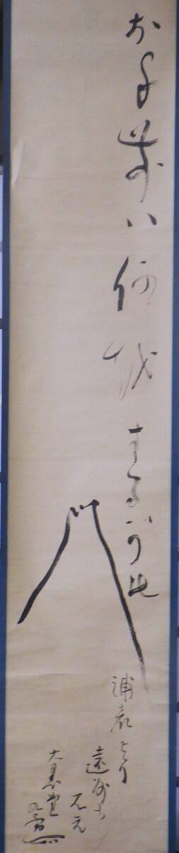真作 短歌『かすみ行く 何にたとへん 浦風を 遠寄る舟の 影の如くに 』 大月堂書 真筆 肉筆 紙本 掛軸 共箱 でございます。
