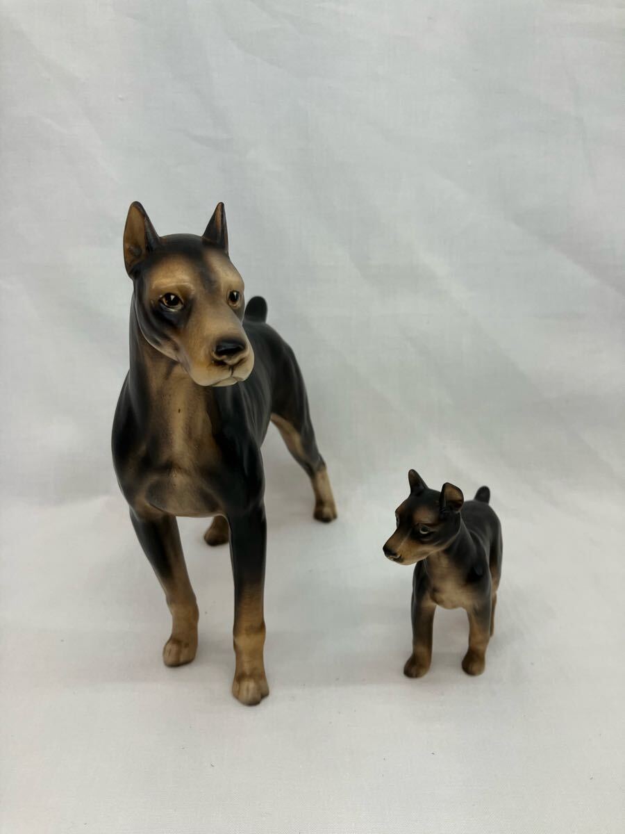 - 犬 置物 動物 親子 陶器 オブジェ 廃盤 非売品 ドーベルマン