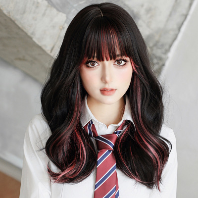 - 【新品】ロング ラズベリーレッド メッシュ ウイッグ 耐熱 コスプレ かつら アイロン可