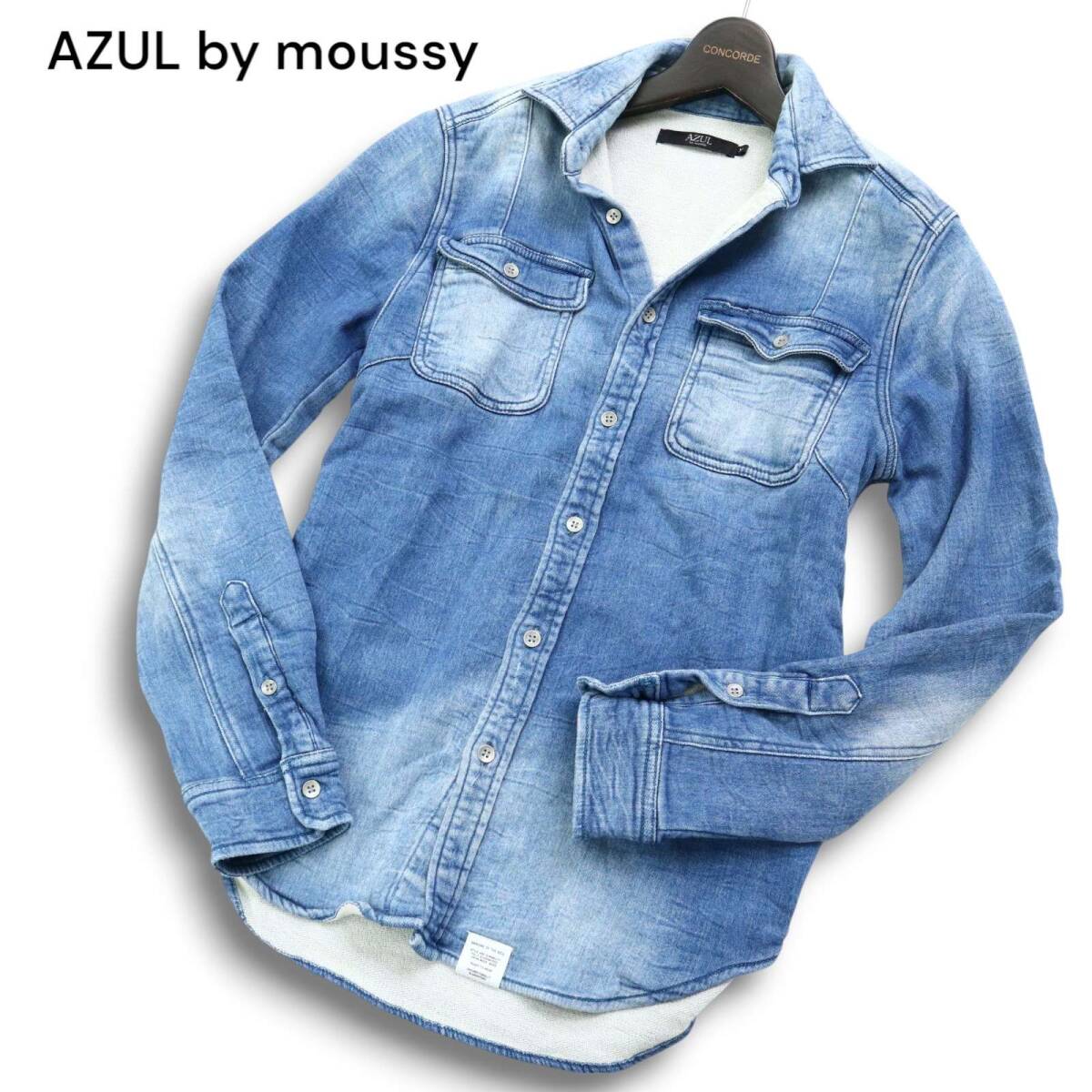 - AZUL by moussy アズール マウジー 通年 USED加工★ 長袖 ストレッチ スウェット ドビー デニム ワーク シャツ Sz.M メンズ