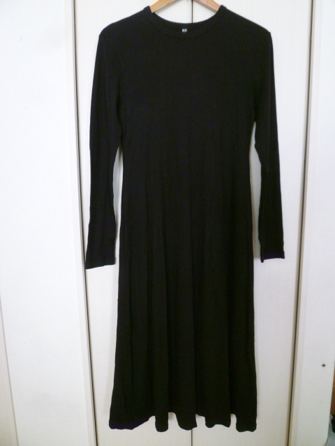 - UNIQLO/ユニクロ◇黒マキシ丈ロングワンピースL/ブラック長袖◇OP81