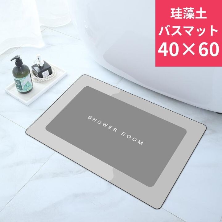- バスマット 珪藻土 お風呂 浴室 グレー 脱衣所 足拭きマット 長方形