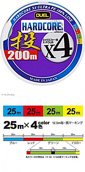 - DUEL ハードコアX4投 200m1.5号4本組PE 4色分け