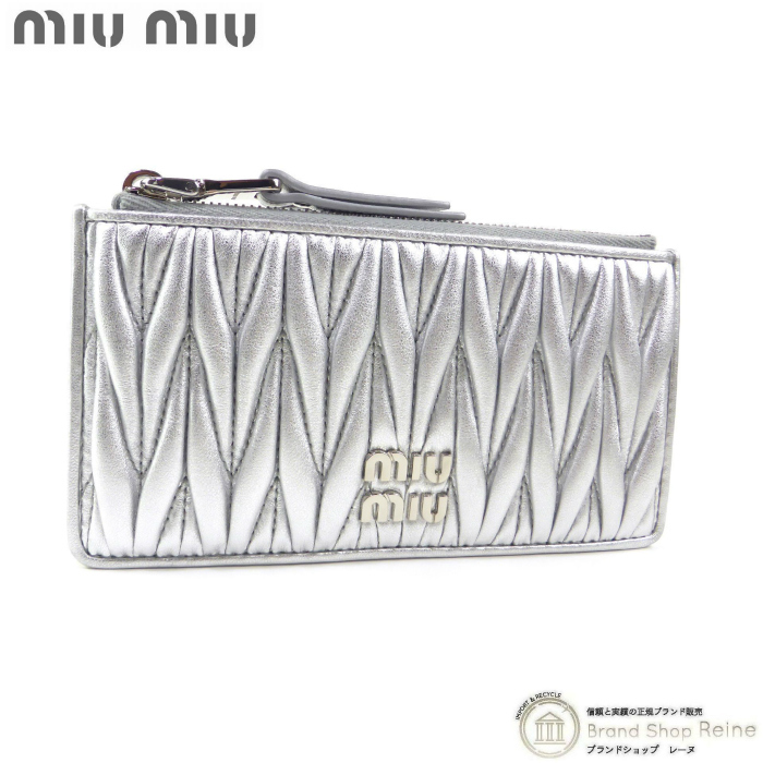 > ミュウミュウ (MIUMIU) マテラッセ ロゴ レザー カードケース コインケース 小銭入れ 5MB006 ARGENTO(新品)
