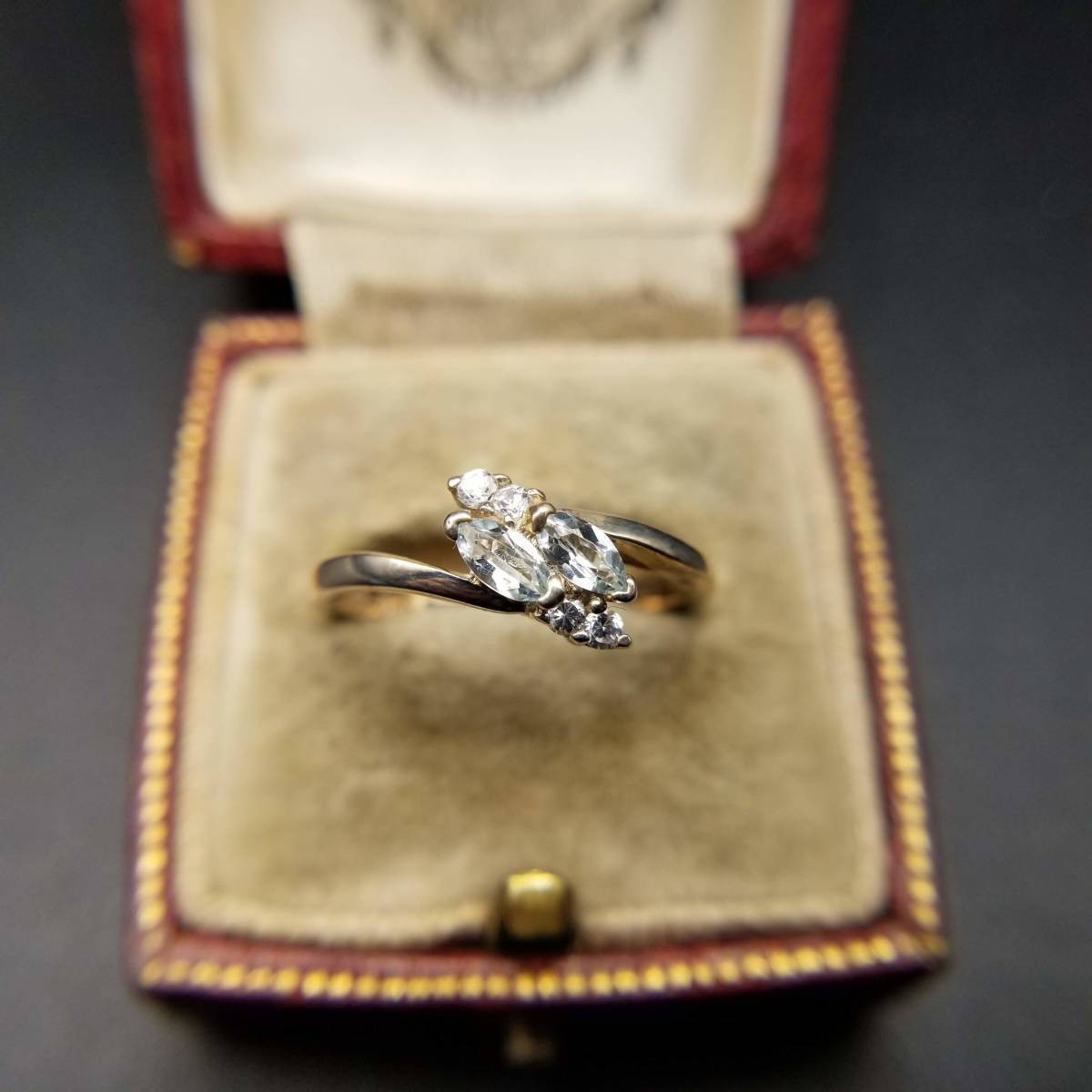 - ラインストーン 小粒 上品 925 シルバー ヴィンテージ リング 銀 指輪 華奢 重ね付け YNR③