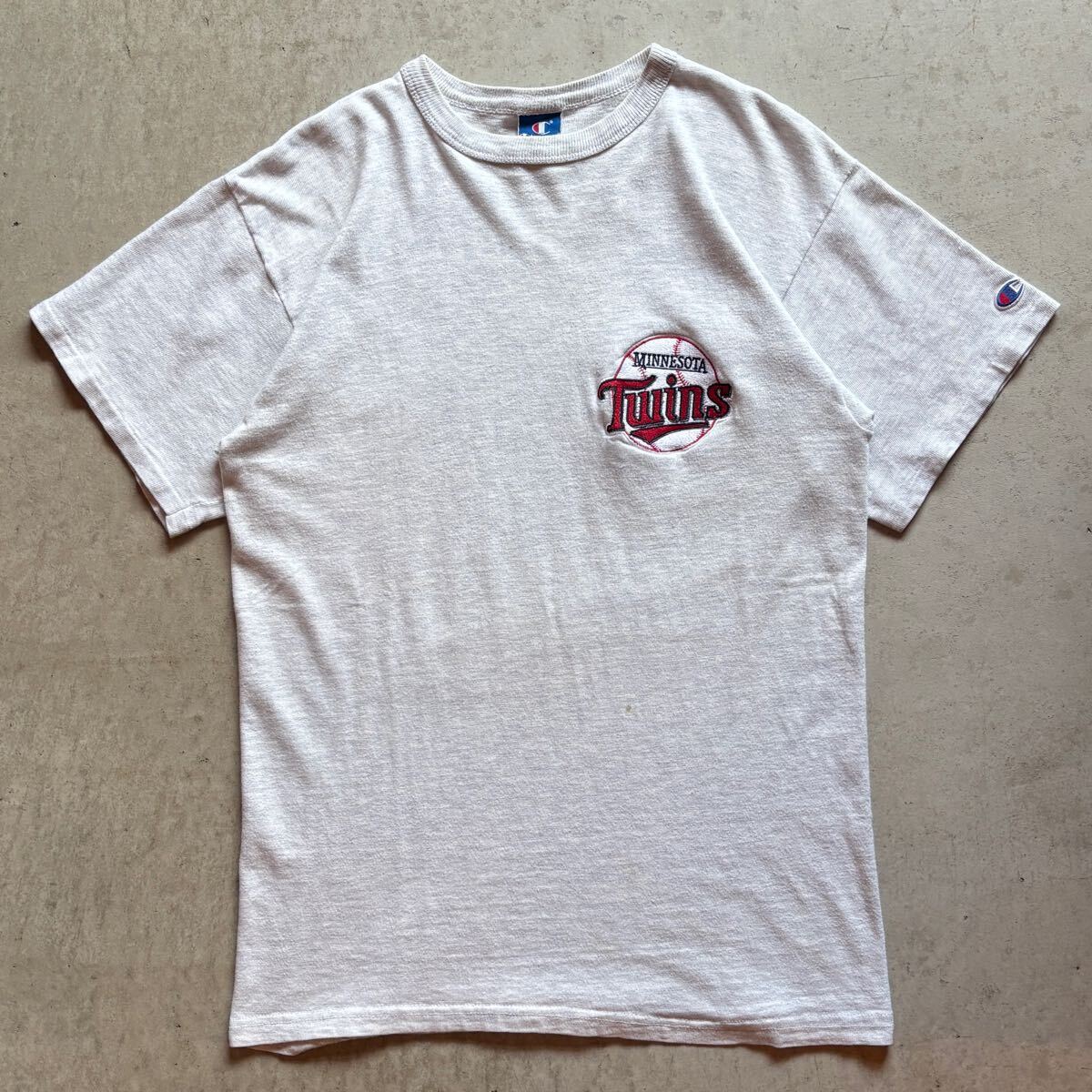 - 【USA製】90s Champion チャンピオン 半袖Tシャツ クルーネック メンズ L 灰/Gray MLB ミネソタ・ツインズ ロゴ 刺繍 アメリカ製 vintage