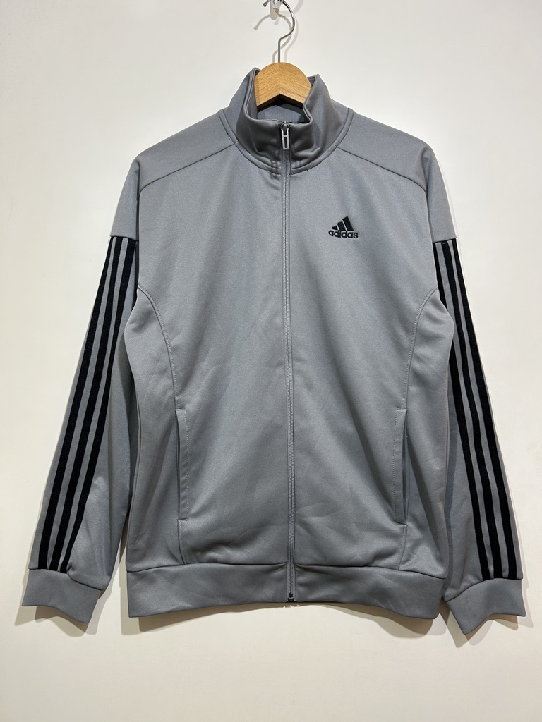 - ★ adidas CLIMALITE トラックジャケット ジャージ グレー スリーライン フルジップ ウォームアップ トレーニング M ワンポイント刺繍