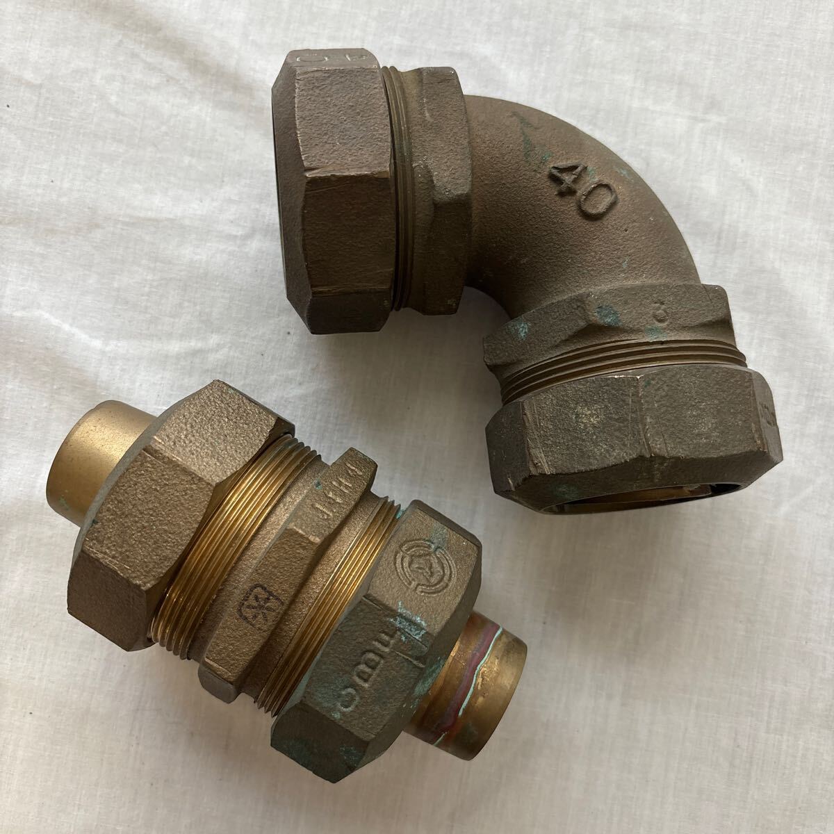 - 水道用? 金属継手? TBC? エルボ? 40? CBF? 2個まとめ ポリエチレン管用? ジョイント タブチ? 工事 建築 配管 長期保管品 送料無料
