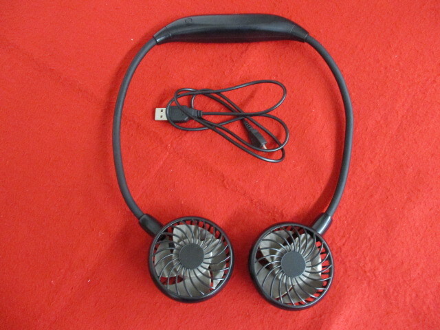 - 【5723】動作OK★ネック ツインファン 黒★USB充電式 5段階風量調整 / 首掛け扇風機 スリーアップ HD-T2009