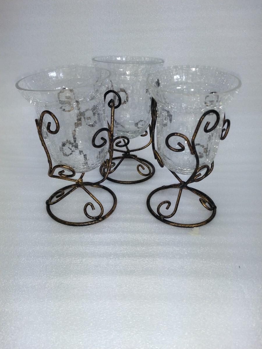 > K204【デットストック】 アンティーク調 ガラス×アイアン フラワーベース? グラス? インテリア シャビ―シック アンティーク 3個
