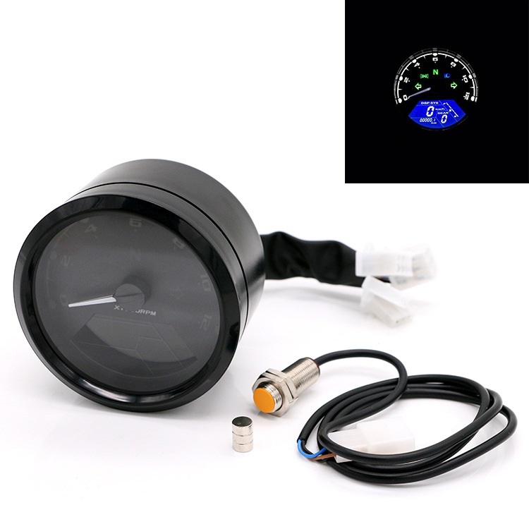 > 大人気新入荷上質汎用オートバイ液晶デジタル走行距離計タコメータスピードメーター防水ゲージ多機能 Cafe Racer 1-4 シリンダー