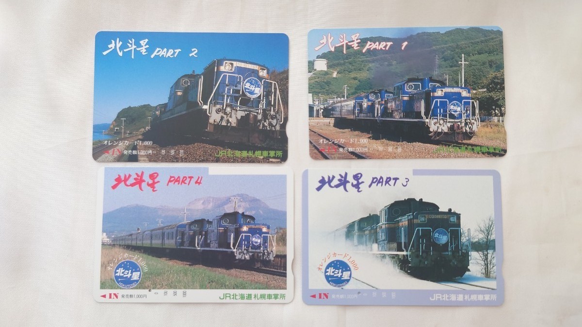 - △JR北海道△寝台特急北斗星 シリーズ全4枚一括△記念オレンジカード1穴使用済み
