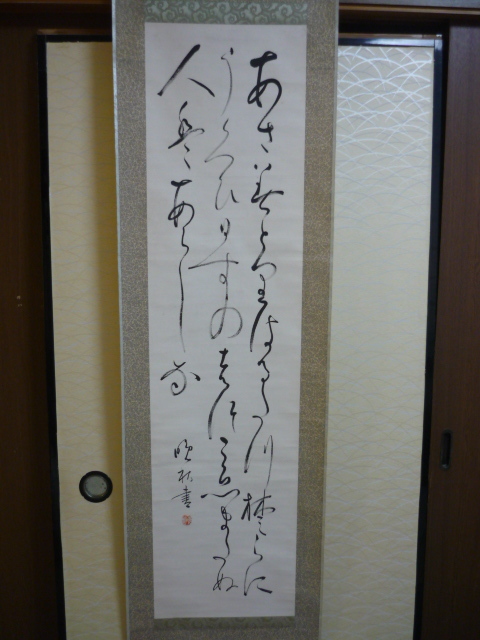 - 【模写】 掛軸 神郡晩秋 書 仮名が多い書 紙本 大きさ全体約198cmx45.5cm 紙本部分約130cmx32.5cm 合わせ箱あり