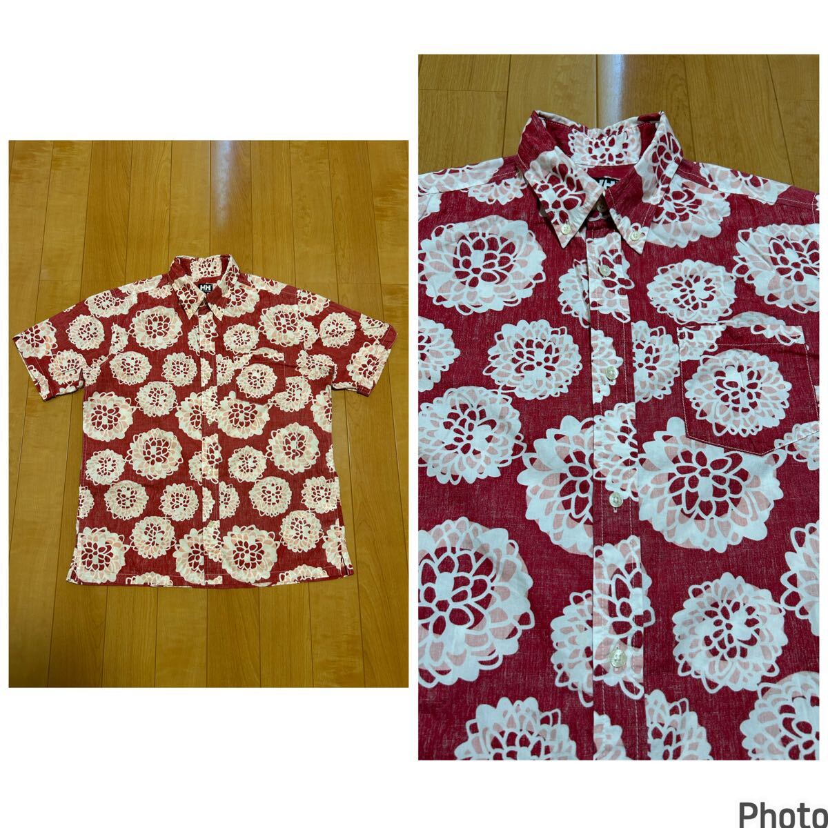 > 美品☆ゴールドウイン社製/ヘリーハンセン メンズサイズL 裏使い生地.希少半袖シャツ型/BDアロハシャツ 古風な花柄調総柄 かりゆしウェア