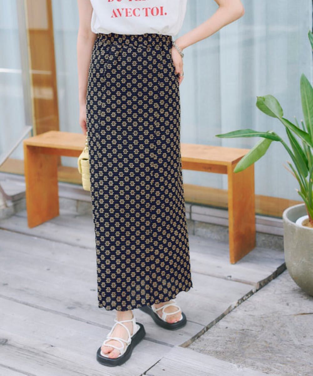 > titivate ティティベイト フラワージャガードレーススカート タイトスカート ウエストゴム ブラック 黒 Lサイズ