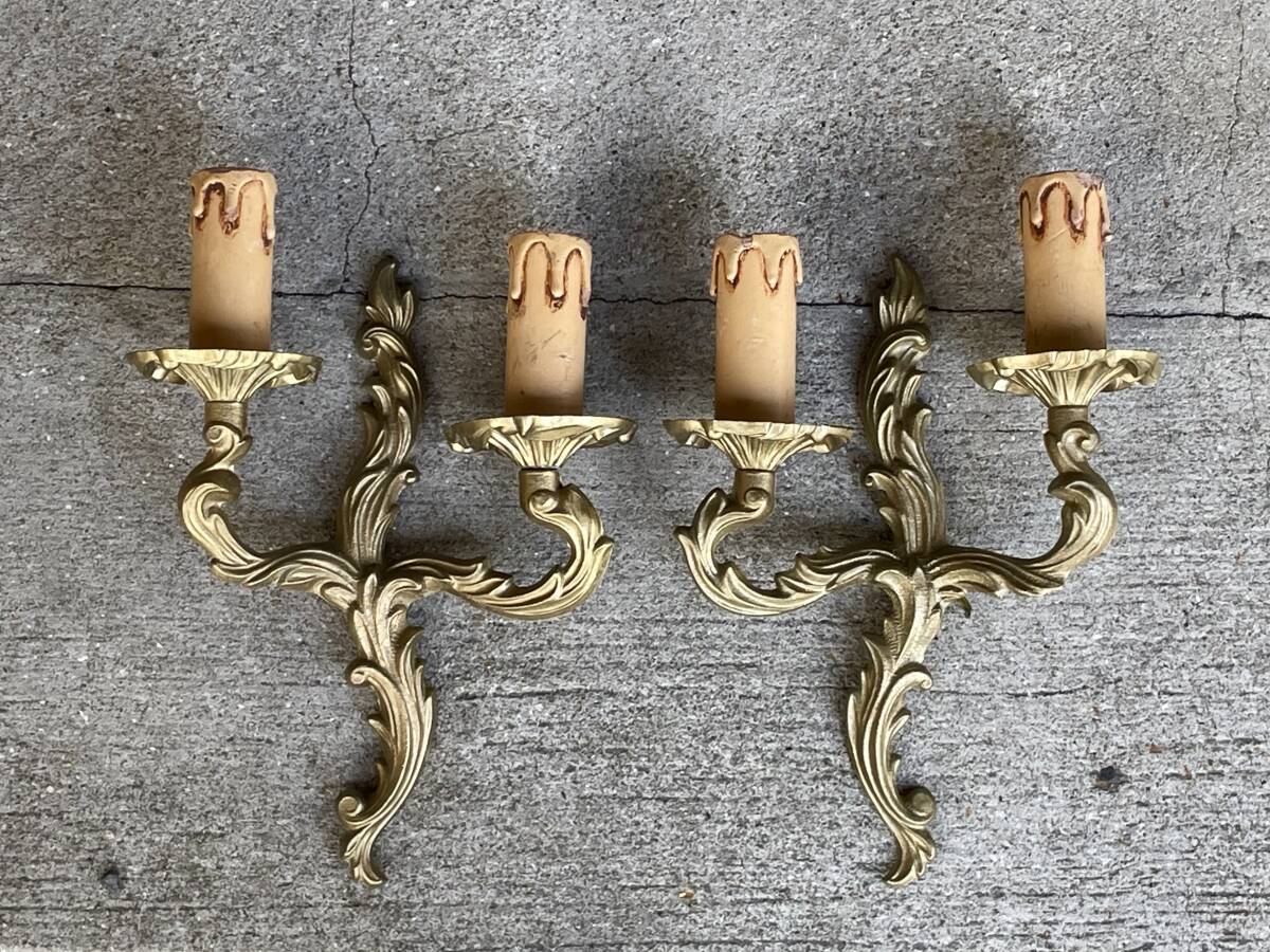 > 32. 2個セット!フランスアンティーク ランプ ブラケット 2灯 キャンドル 照明 ライト ウォール 蚤の市 店舗 什器 カフェ 美容室