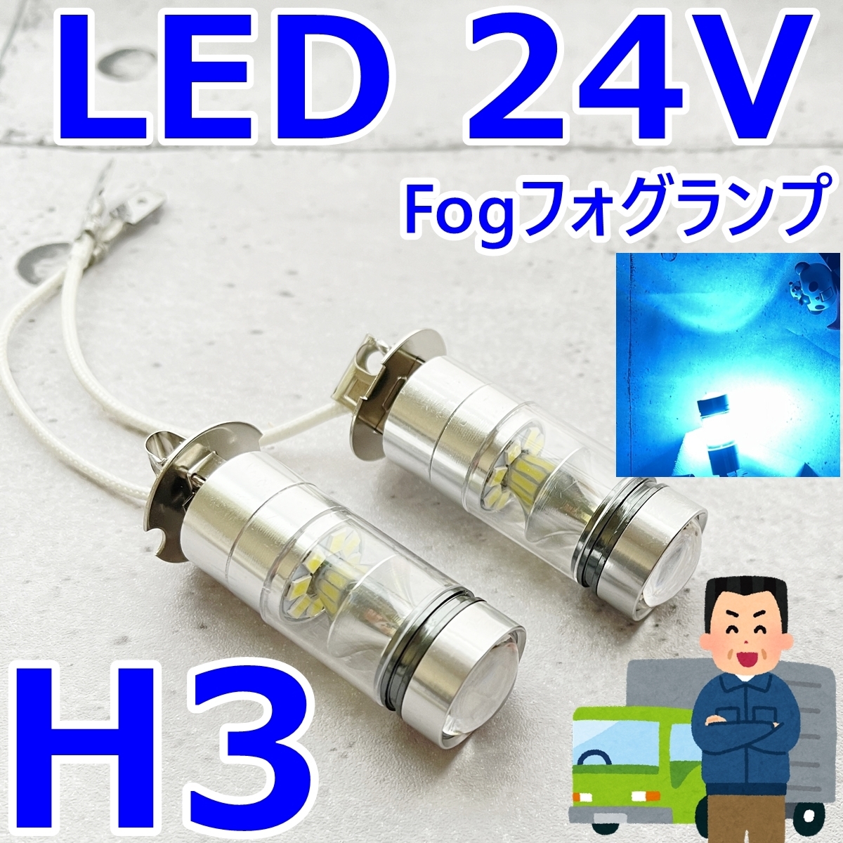> H3 24V★LED フォグ バルブ★バス・トラック★ジェネレーション キャンター 三菱ふそう/いすゞ/日野/セレガ/日産 ダイナ 2t☆アイスブルー