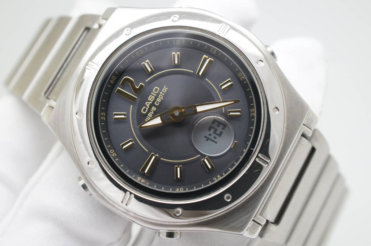> G29●作動良好 CASIO カシオ WAVE CEPTOR ウェーブセプター LWA-M141 電波ソーラー アナデジ 黒文字盤 レディース腕時計 シルバー お洒落