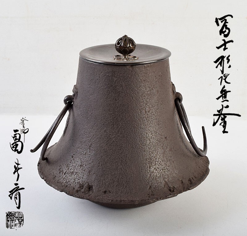 - 茶道具 釜師 畠春斎作 富士形尾垂釜 共箱 VOKY