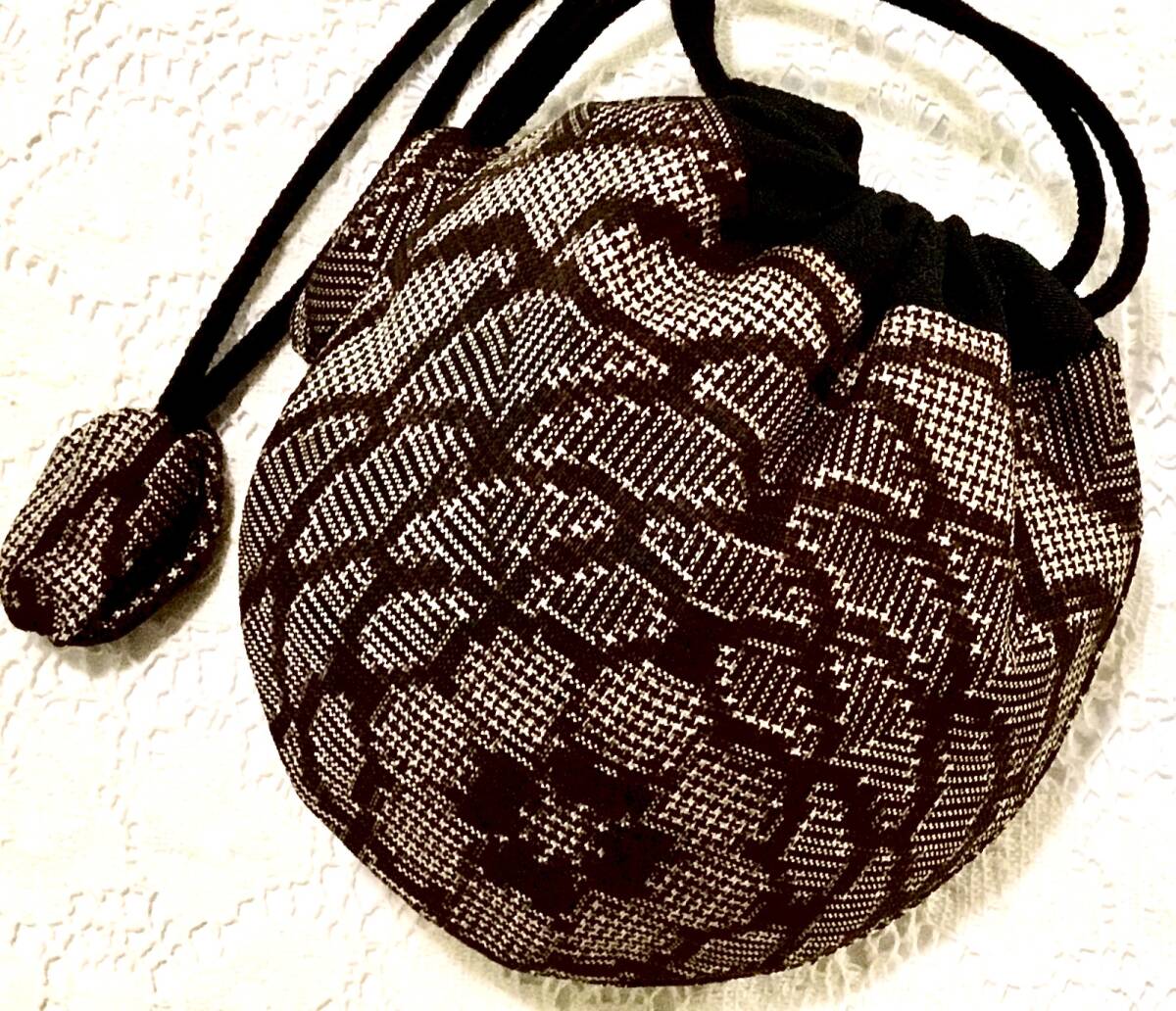 - 古布830小丸袋・絹( 八重菊 泥大島) 時代着物地