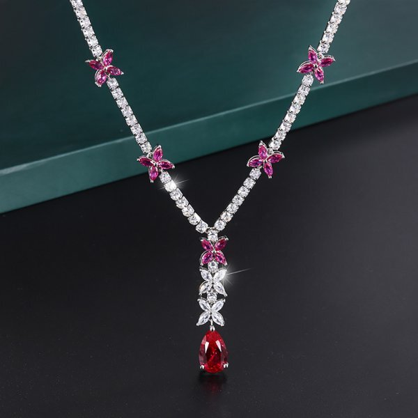 - ルビーペンダント付きネックレス、9x14mm、高級ジュエリー、残り時間4日までに最初に入札すると開始価格で購入可能 Kn