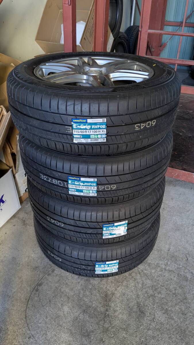 > 中古夏タイヤホイールセット 215/60R17 エフィシェントグリップ RVF02 LAYCEA 17x7J+48 5/114 4本セット ★☆送料安★☆
