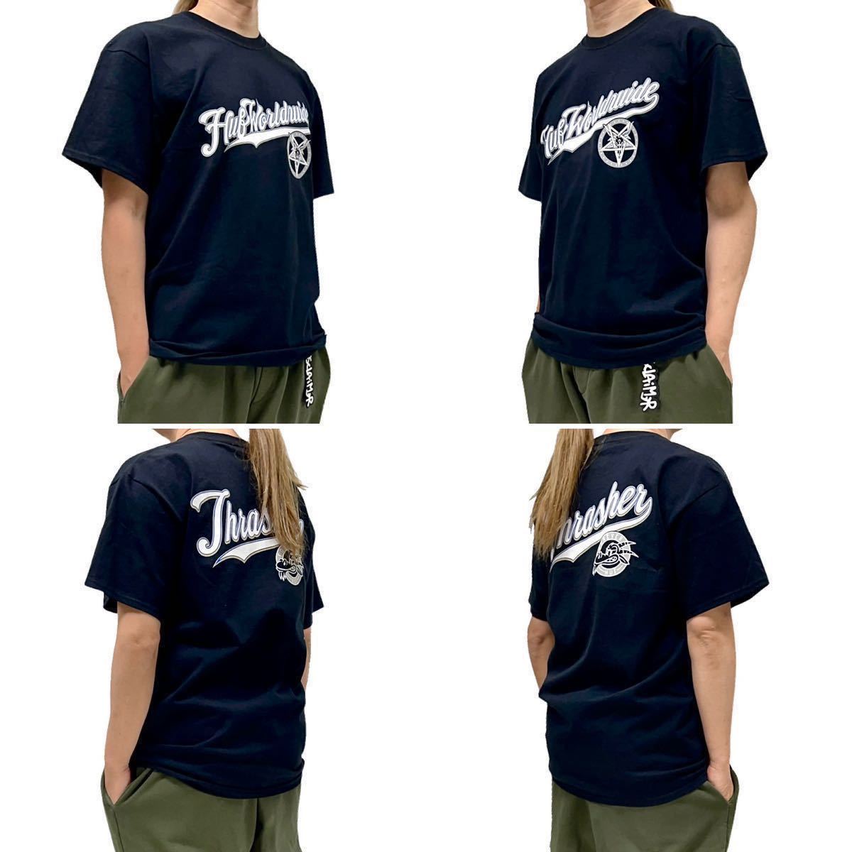 > 新品 HUF ハフ THRASHER スラッシャー ドラゴン SKATE GOATベースボール ロゴ バックプリント カレッジ ビッグ Tシャツ 黒 ブラック XL(LL)